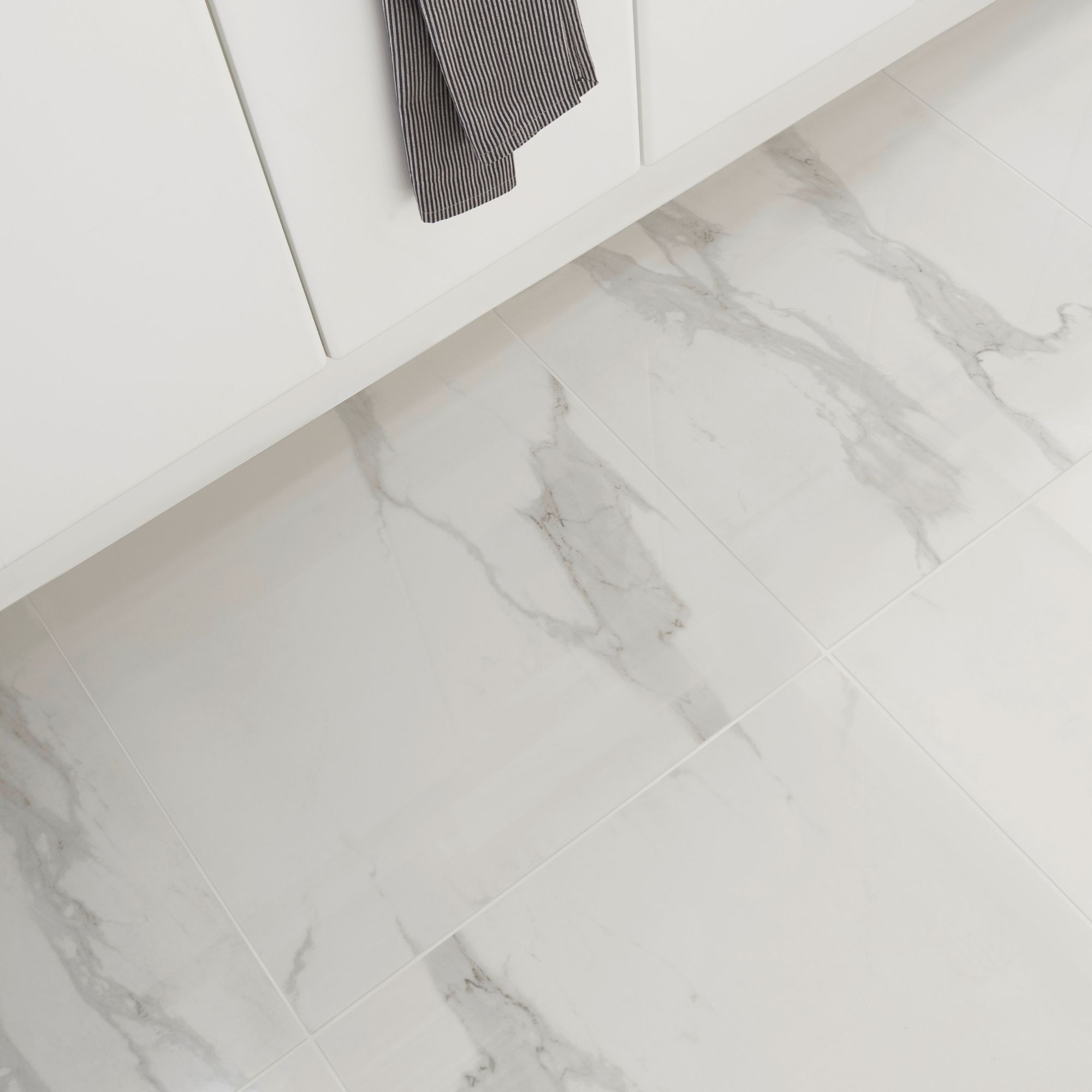 Ultimate White Marble Effect Porcelain Floor Tile Pack Of 3 L 595mm W 595mm Departments Diy At B Q